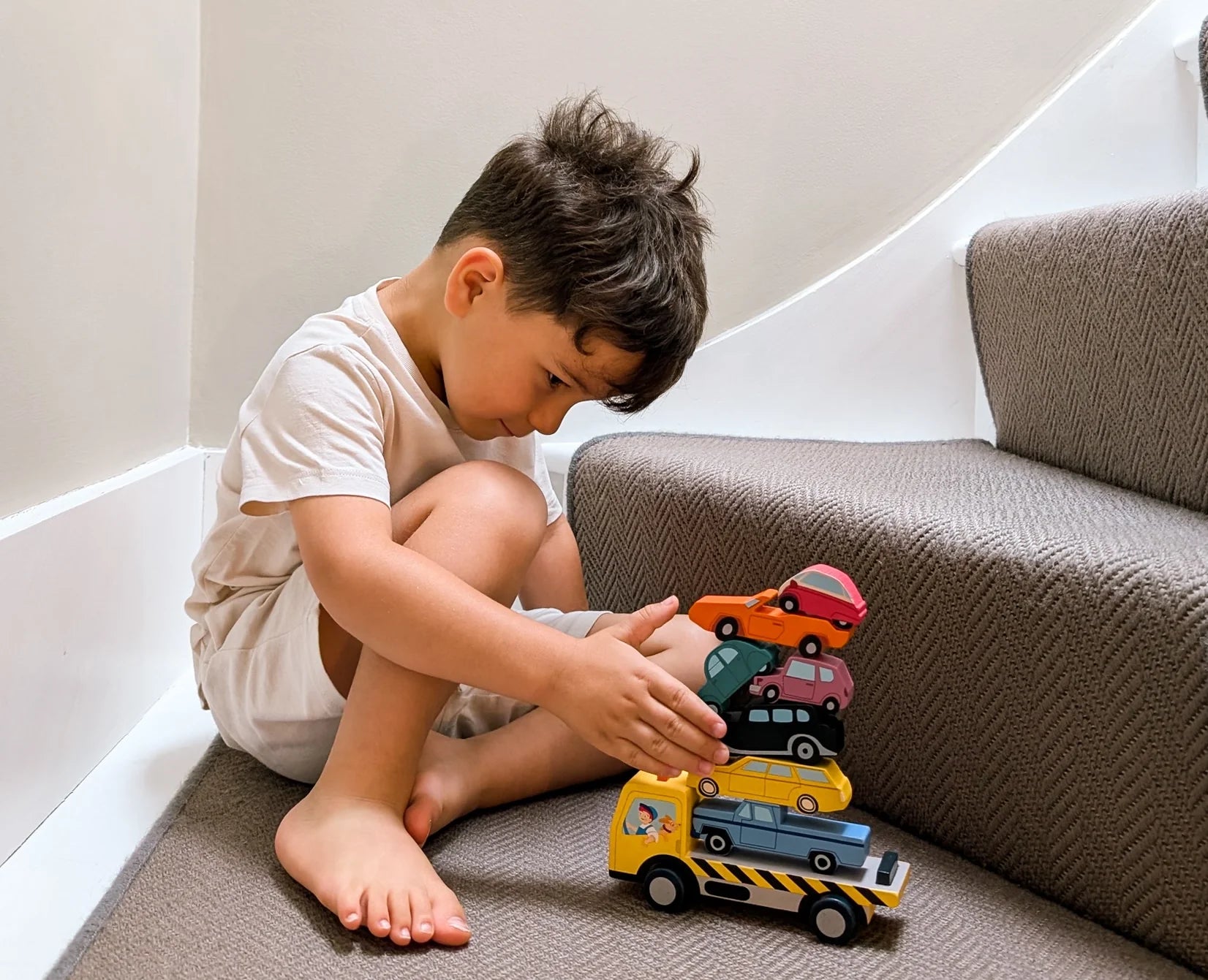 "Everywhere! At home, Noah has a dedicated play area in the corner of our living room, but we’re never really confined to it; every little nook in the house is fair game for an adventure! Our soft-play slide suddenly becomes a ramp for monster trucks, cushions are propped up on the sofa to make dens and tiny hideaways, and the beds in each room transform into Ferraris, jeeps or caravans for epic road trips to the beach."