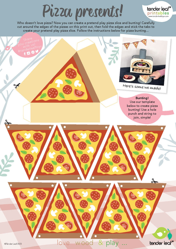 A handy pizza oven with 5 logs to fire up your very own pretend play pizza oven! Make your own pizza with 6 different pizza toppings on a red felt tomato base! Pop them in the oven with the pizza slider and wait for them to cook! Pepper pot included.