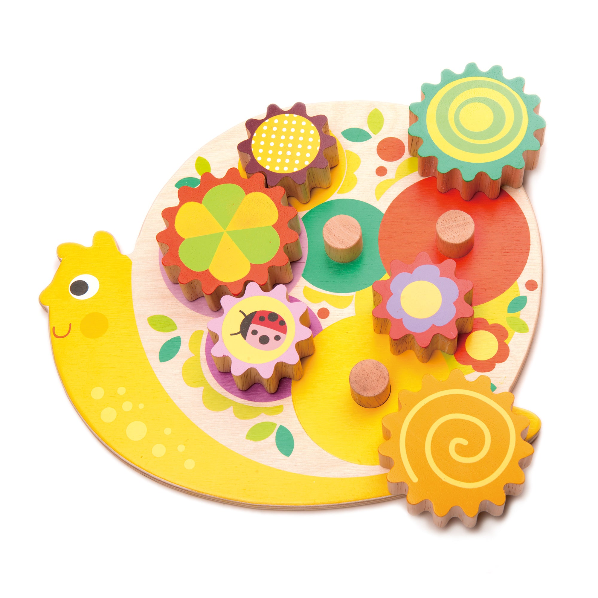 Look who is hiding in the flower garden? The Snail Whirls has a colorful snail base and 6 removable flower cogs and gears. It helps children to develop fine motor skills and cognitive development.